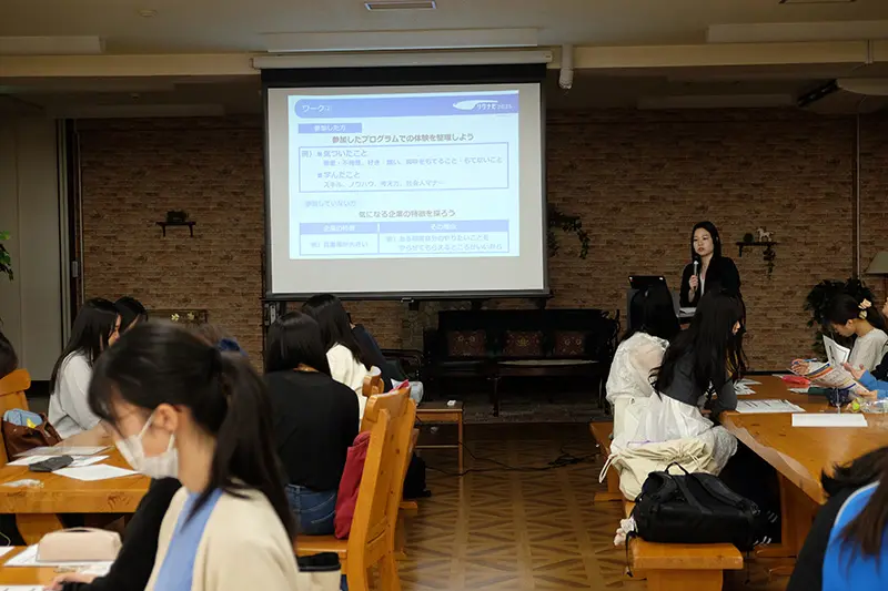 今回のワークショップは、大手人材会社でキャリアを積んだ就職活動アドバイザーに講師をお願いしました。講師の先生からは、ディスカッションをスムーズに進めるために、出題されたテーマ関わる言葉の定義を行うことが、その後のディスカッションをスムーズにするために重要であること、加えて、言葉の定義を提案すること自体が、グループワークにおける評価ポイントとなることなど、たくさんの貴重なアドバイスを頂きました。