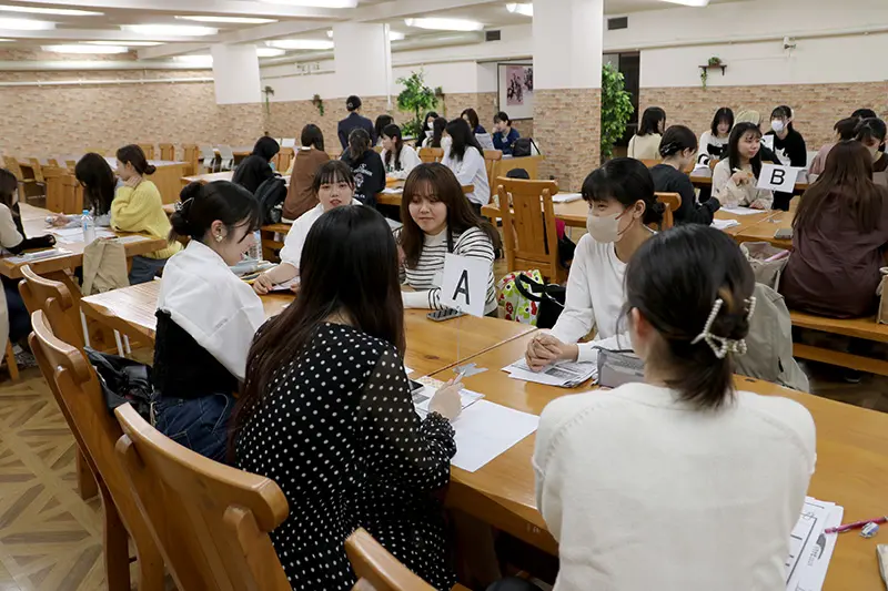 10月3日から、3年生を対象にした『就職試験対策講座』がスタートしました。第1回目の講座は『就活に活かすインターンシップ~対面グループディスカッション~』と題し、ワークショップ形式で模擬グループディスカッションを行いました。参加者は6名ずつのグループに分かれ、約20分間にわたって「社会人と学生の違い」をテーマにディスカッションを行いました。