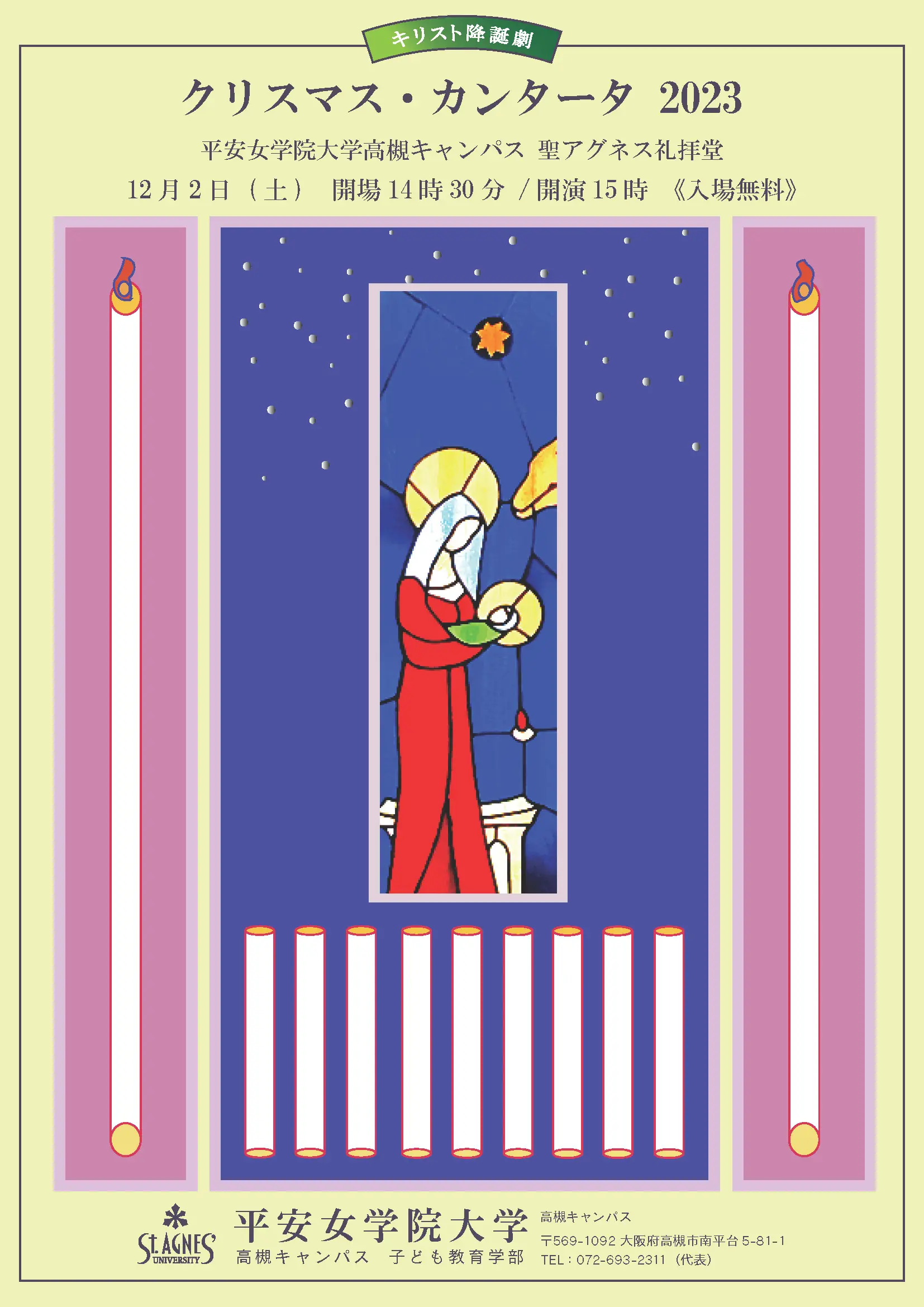 12月2日(土)に平安女学院大学 大阪高槻キャンパス内の聖アグネス礼拝堂にてクリスマス・カンタータ 2023を開催いたします。