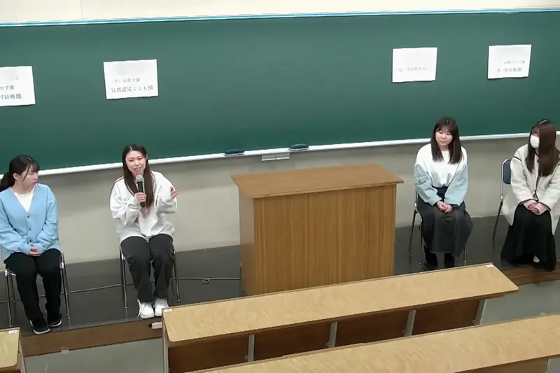さらに、1月11日(木)には、保育職に内定している先輩たちから就職活動の体験を直接聞ける「内定者体験談」(私立保育施設編/公立保育施設編)を実施しました。応募の手続きや面接・実技試験などの対策を知り、具体的な活動をイメージできる機会となりました。