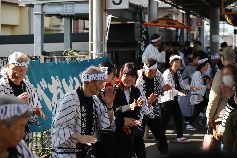 ツアー参加者の方には、沿線の地元団体によるおもてなしや、「福知山鉄道館フクレル」や「福知山城」の見学、福知山駅北口公園で開催の食のイベント「FarmersTables FUKUCHIYAMA EKIKITA」など、森の京都エリアの魅力を存分に楽しんでいただきました。
