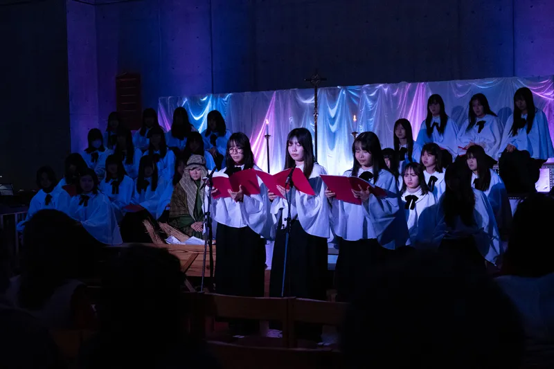 クリスマス・カンタータとは、キャスト・聖歌隊・運営スタッフなどを学生・教職員などが担いイエス・キリストのご降誕をお祝いする、本学の宗教行事です。