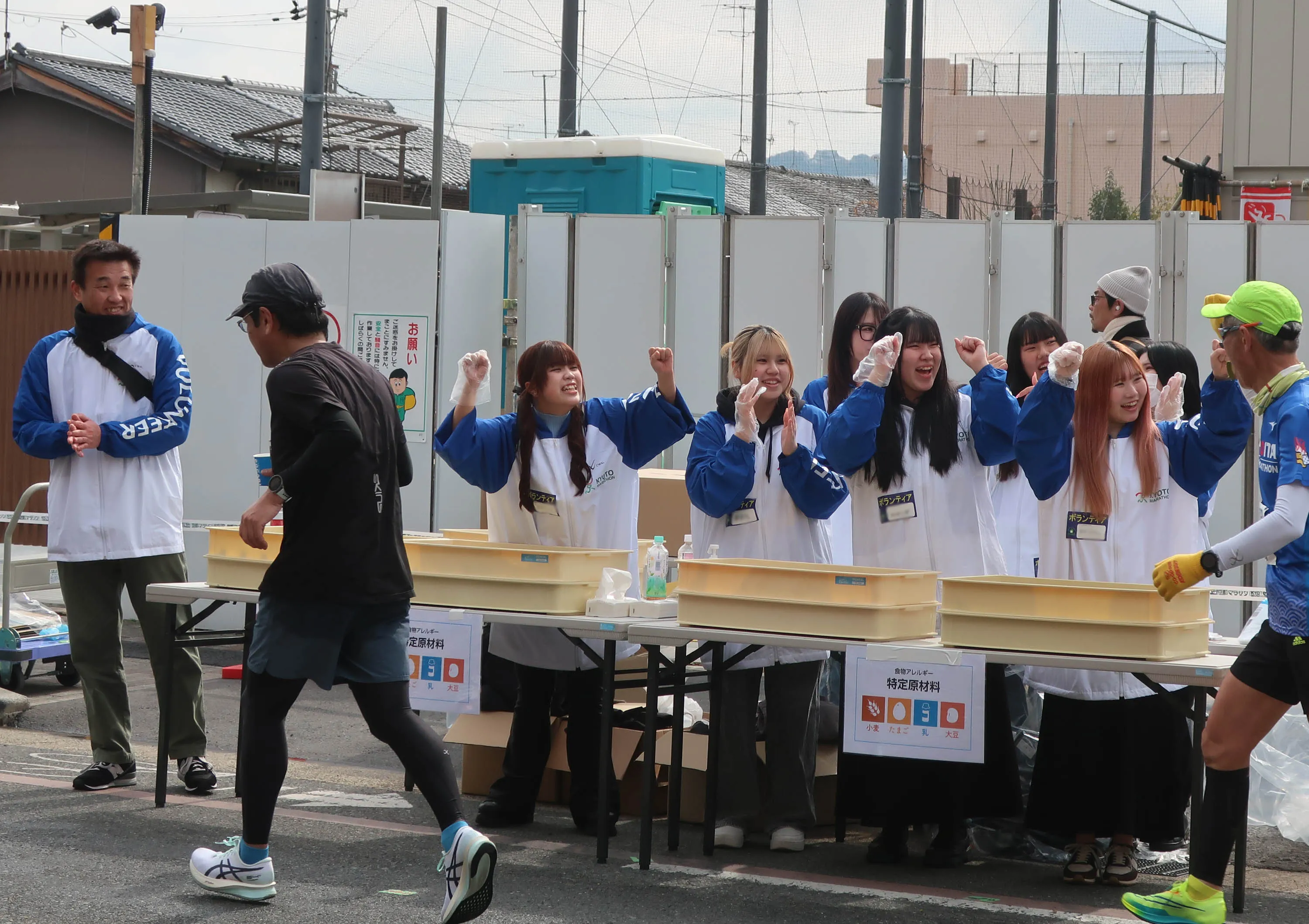 今年は国際観光学部の学生だけでなく、子ども教育学部の学生も参加。学部関係なく、一丸となってランナーの皆さんをサポートしました。