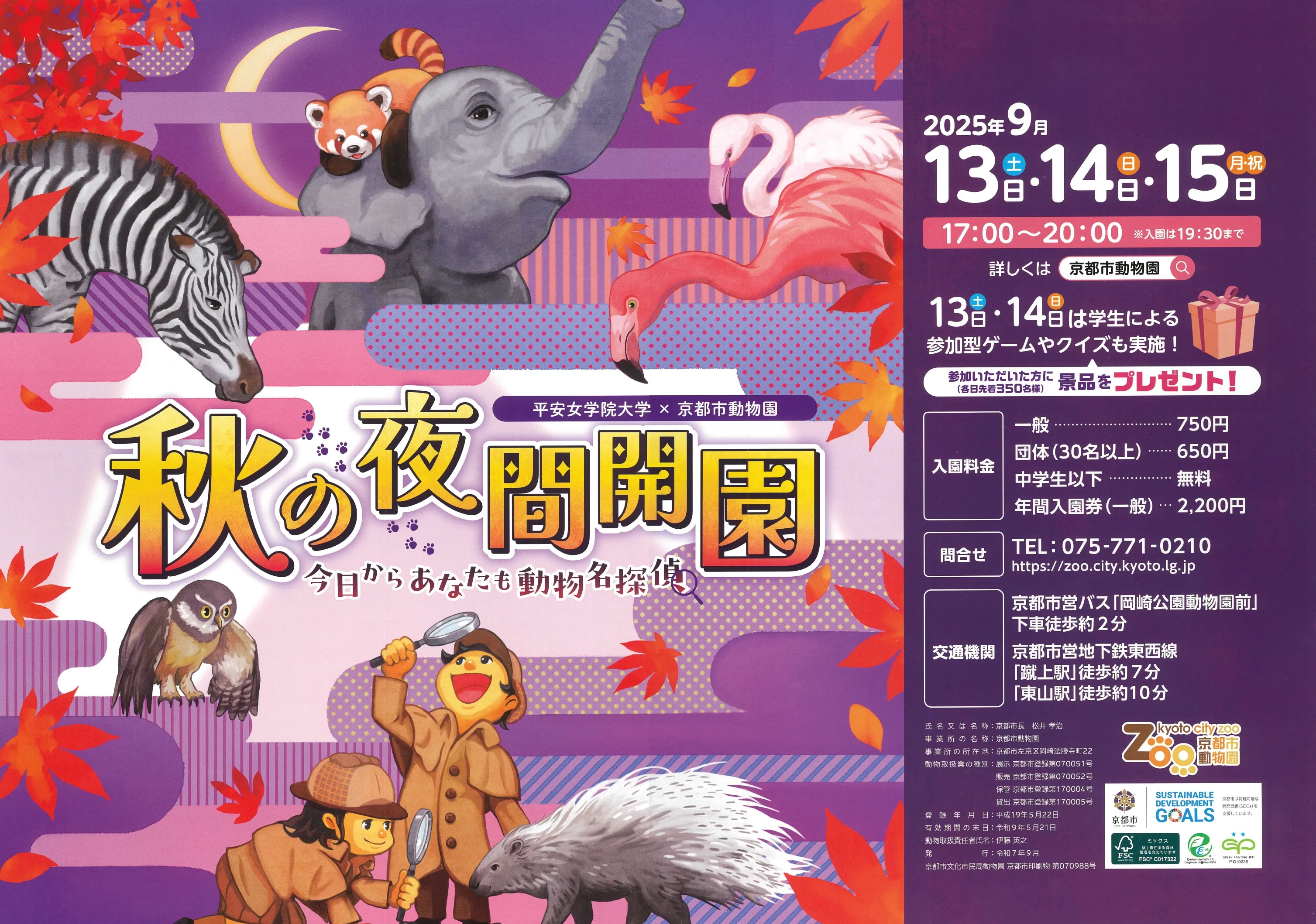 秋の夜間開園『今日からあなたも動物名探偵』等のイベントの実施